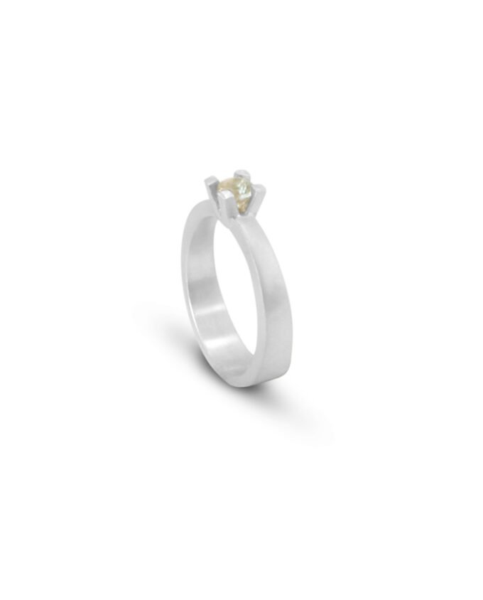 Anillo hecho a mano en plata y piedra preciosa de color.